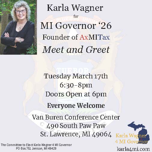 Join Karla at the Van Buren Conference Center in St. Lawrence, Michigan and learn about her plan to clean up Lansing!